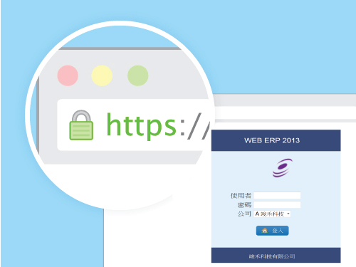 竣禾科技為保障客戶資訊的安全,所有WEB ERP租賃系統,將全面強制改用HTTPS連線,讓客戶能更安心使用,即使在公共場所,如咖啡店、車站等使用免費 Wifi,因為加密傳輸可以更安心的隨時操作系統,不用擔心資料安全的威脅。