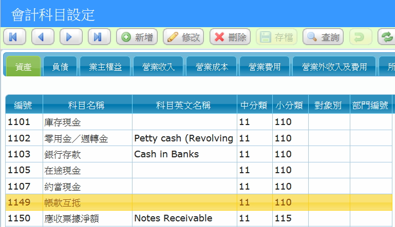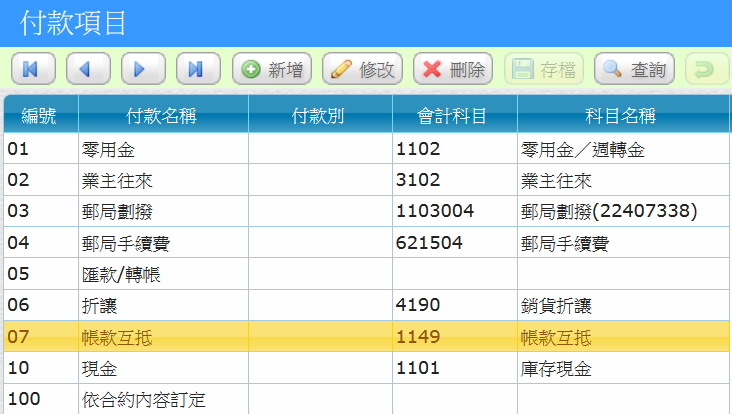 2.在付款項目,建立一個『帳款互抵』項目,且對應到『帳款互抵』會計科目