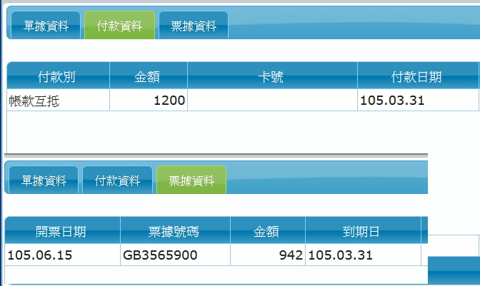 3.在應付沖帳作業,付款項目帶入『帳款互抵』,輸入票據資料