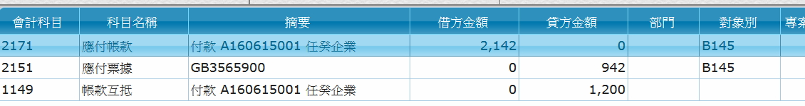 舉例:任癸公司是廠商同時也是客戶,那麼應收帳款$1,200,要抵應付帳款$2,142,剩下$942用支票付款如何作業?