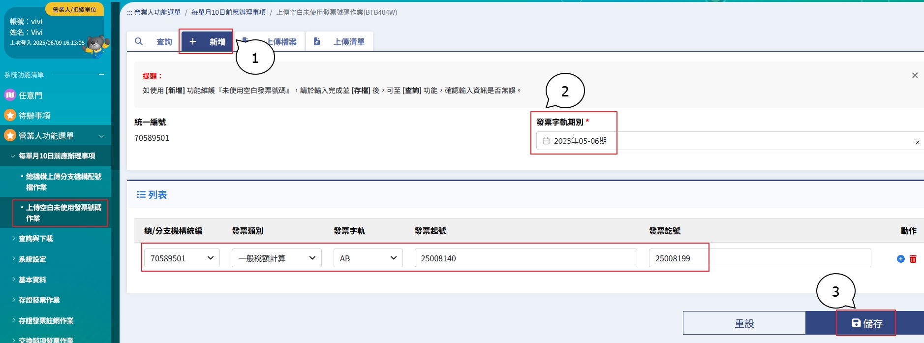 未使用完畢之空白字軌號碼於次期 5 日 WEB ERP 會自動計算並上傳至財政部平台,不需要人工介入,達到自動化的好處。