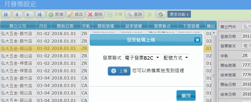 如果使用POS模組,並且有多個收銀機台,在發票號碼上傳作業中,提供自動號碼分配的功能: