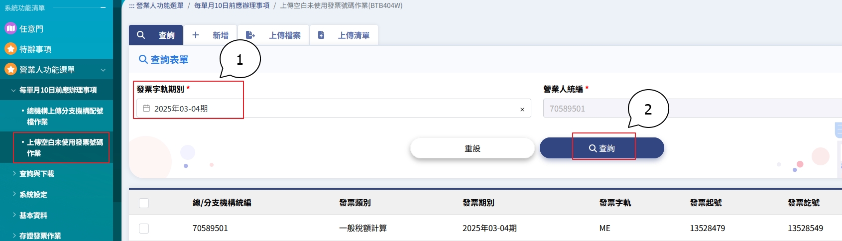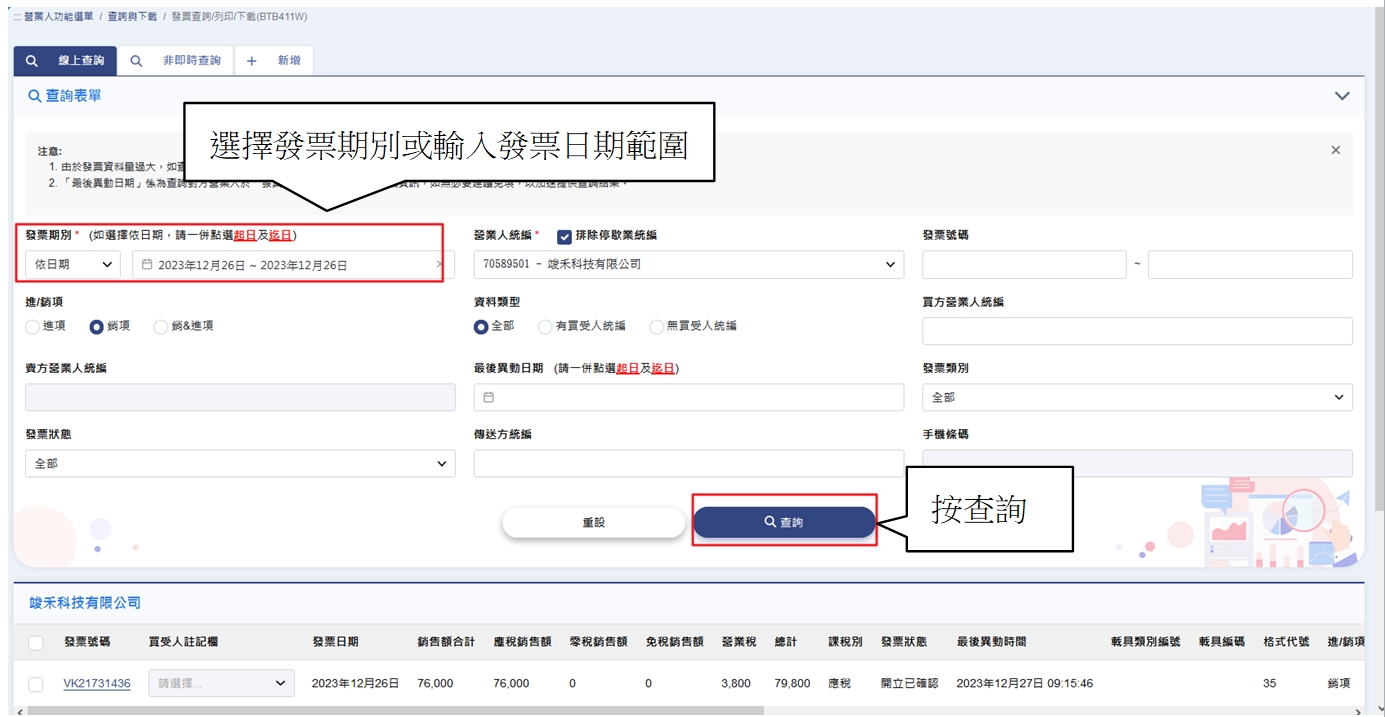 電子發票字軌號碼取號>電子發票字軌號碼取號>查詢